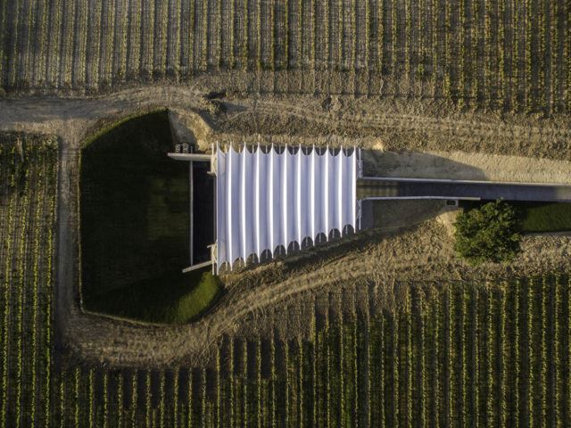 Chateau La Coste Sanat Galerisi, üzüm bağlarıyla çevrili doğanın içerisinde hem sanat eserlerinin, heykellerin sergilendiği bir galeri hem de bu bağlardaki üzümlerden üretilen şarapların saklandığı bir şarap mahzeni olarak işlev görüyor. Hem bu programlar için istenen mekan hem de bulunduğu bağa yapının tam olarak yerleşmesi, alanla bir bütün olabilmesi için ekip yapıyı dümdüz bağın topoğrafyasına yaklaşık 6 metre kadar gömmüş. Böylece yapıyla alanda yapıyla bir vadi oluşturulmuş ve üzüm bağlarının bütünlüğü yüksek katlı bir yapıyla kesintiye uğratılmamış.